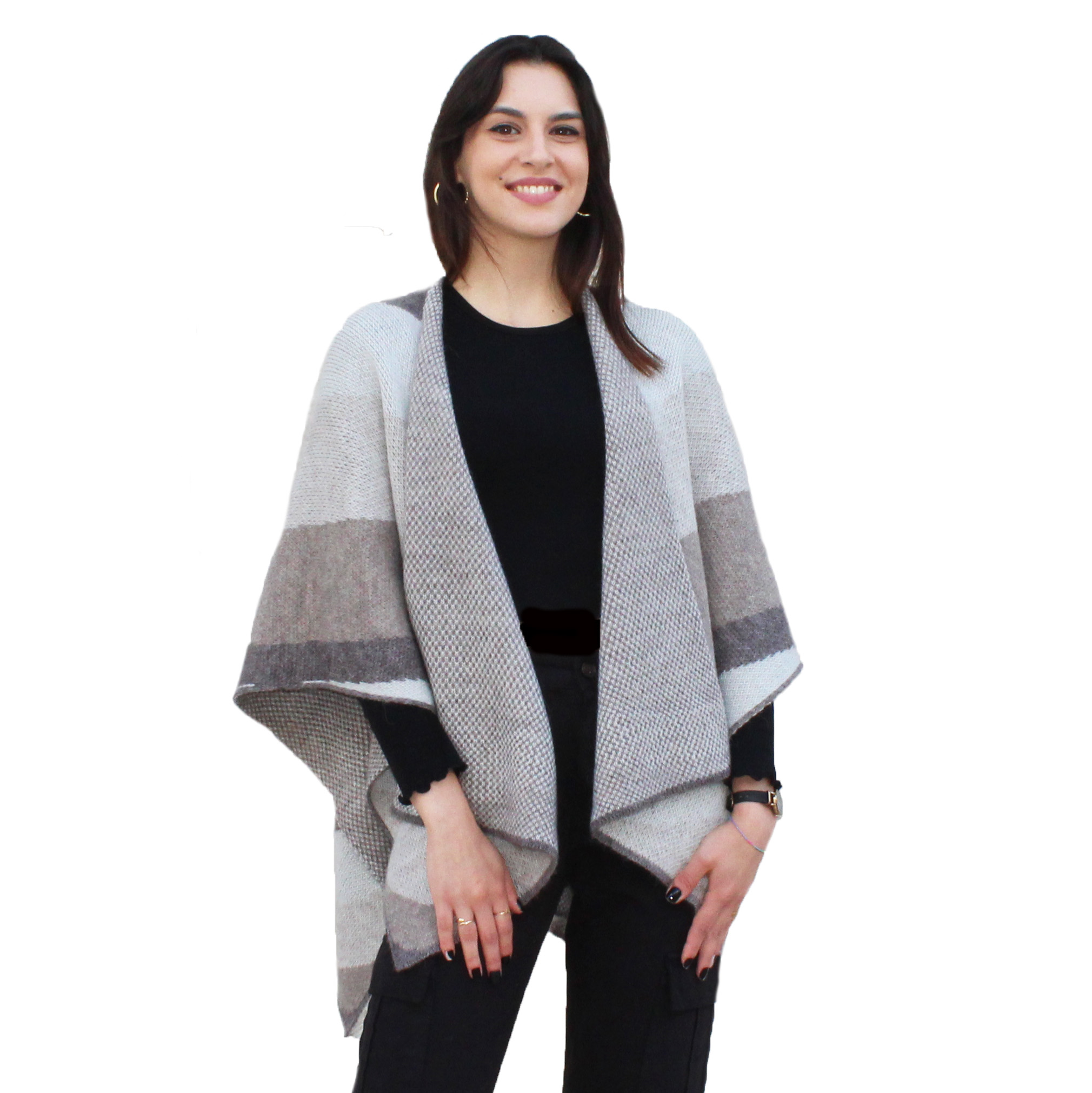 La nostra mantella è progettata per adattarsi a diverse occasioni e stili. Indossala come mantella classica o trasformala in un trendy poncho per uno stile più casual. È il capo ideale per il lavoro, una serata fuori o una passeggiata in città.